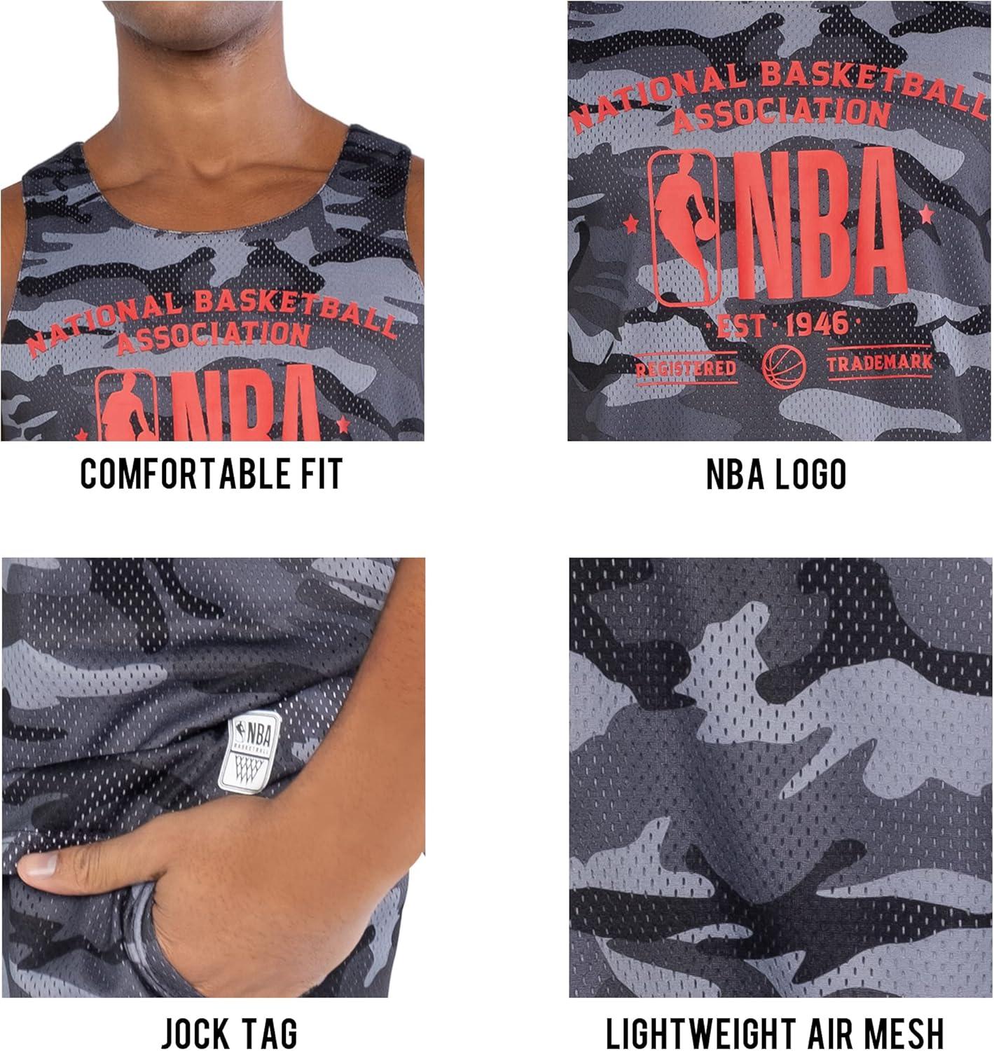 GRAPHIC DETAILS: High quality screenprinted graphics of the NBA logo on a gray/camo body. Reversible tank top with a jock tag on the hemline for that effortlessly swag street style; Syncs well with your everyday outfit