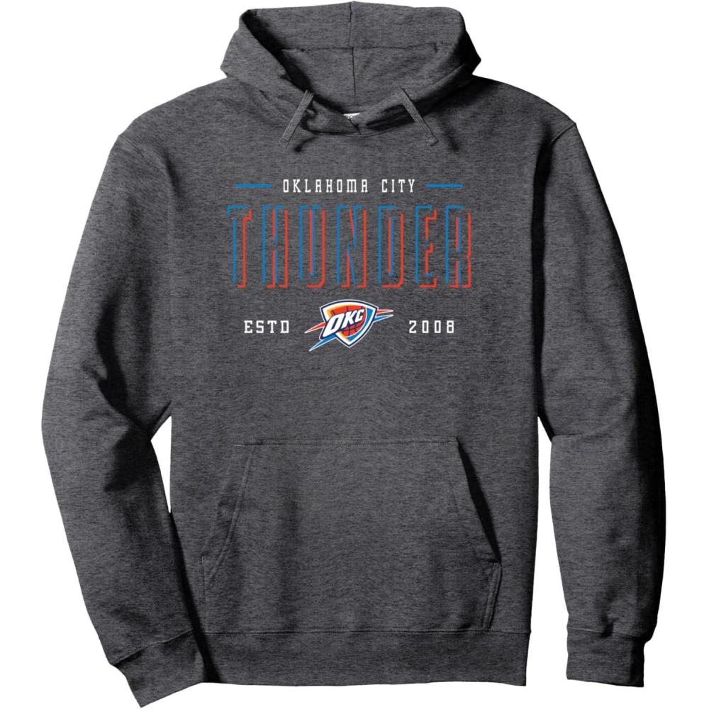 NBA Official Oklahoma City Thunder Half Moon Pullover Hoodie(Dark Heather Grey)