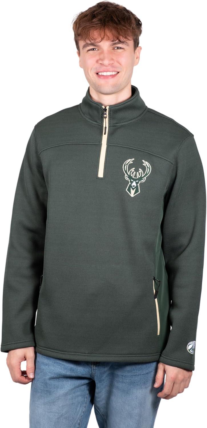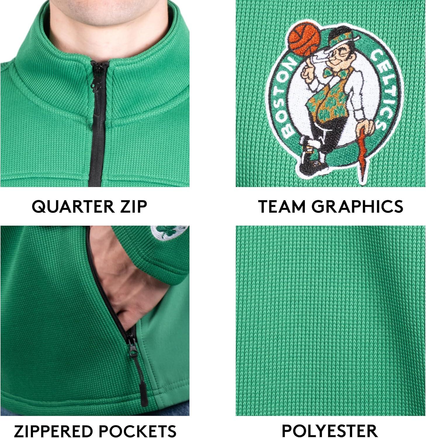 Ultra Game Men’s NBA Official Super Soft Quarter Zip Sweatshirt with Zipper Pockets(Team Color)