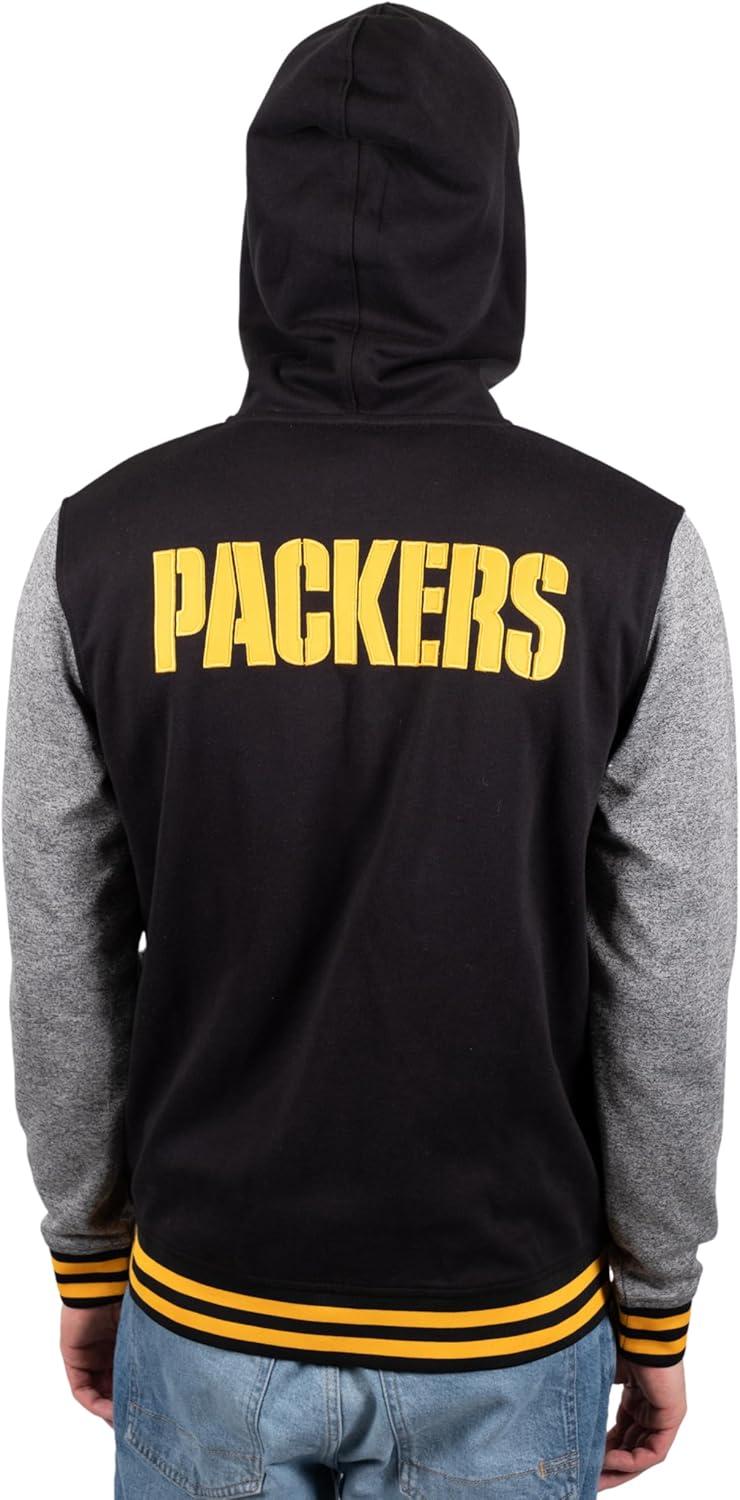 Ultra Game Men’s NFL Official Ultimate Full Zip Varsity Hoodie Sweatshirt Jacket(Green Bay Packers)