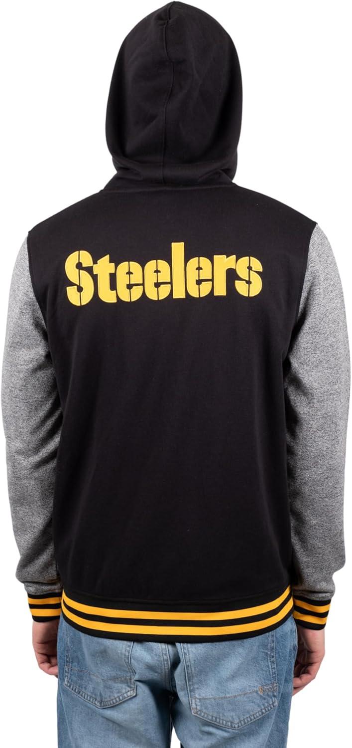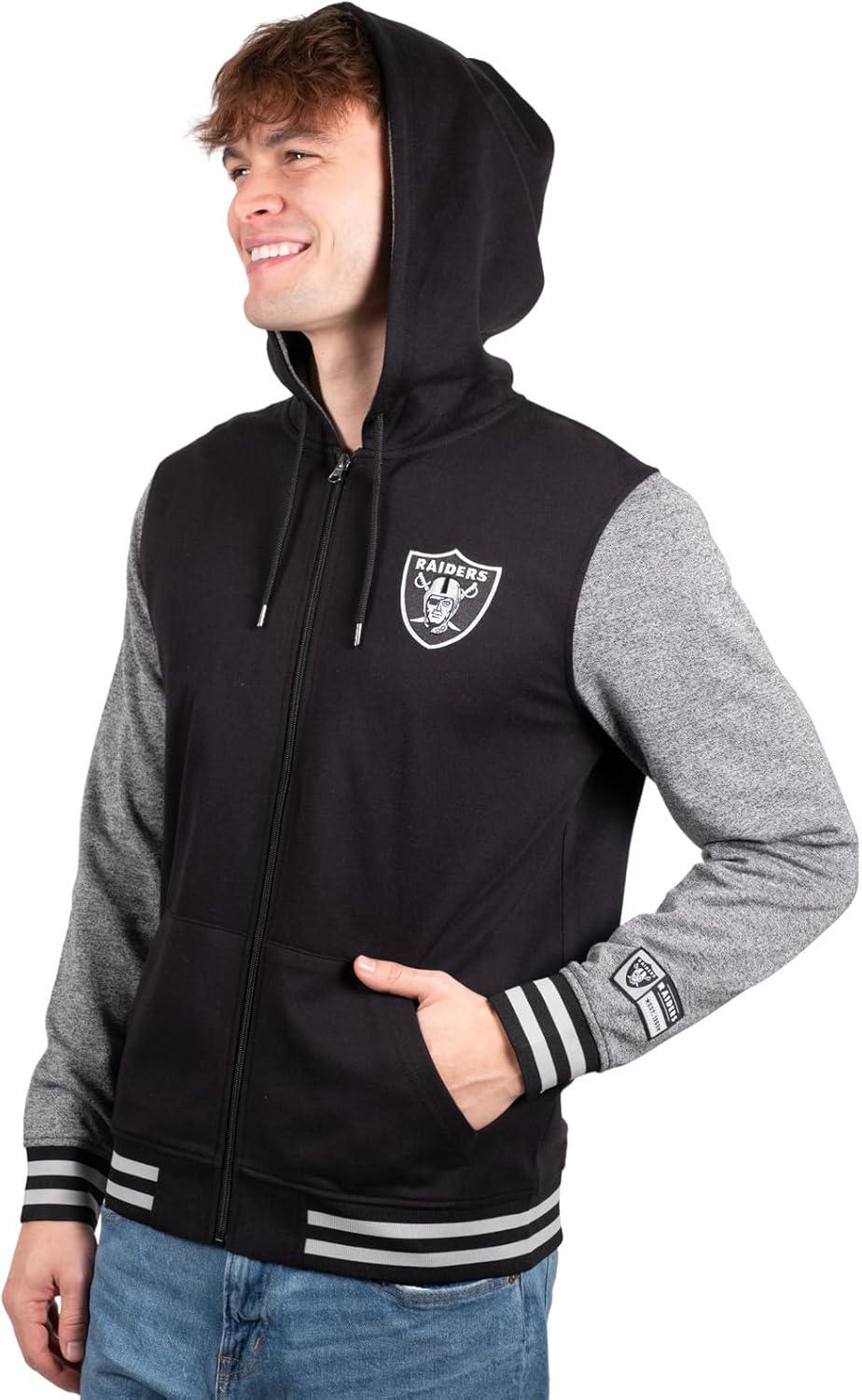 Ultra Game Men’s NFL Official Ultimate Full Zip Varsity Hoodie Sweatshirt Jacket(Team Color Black)