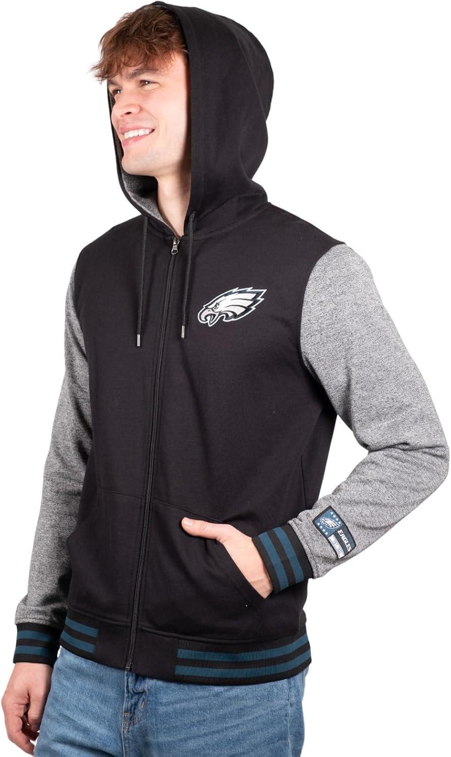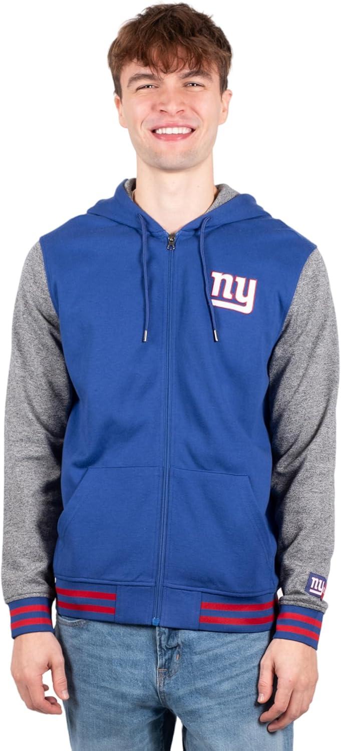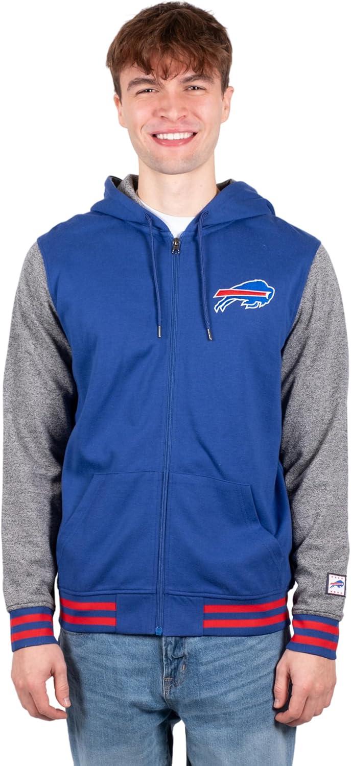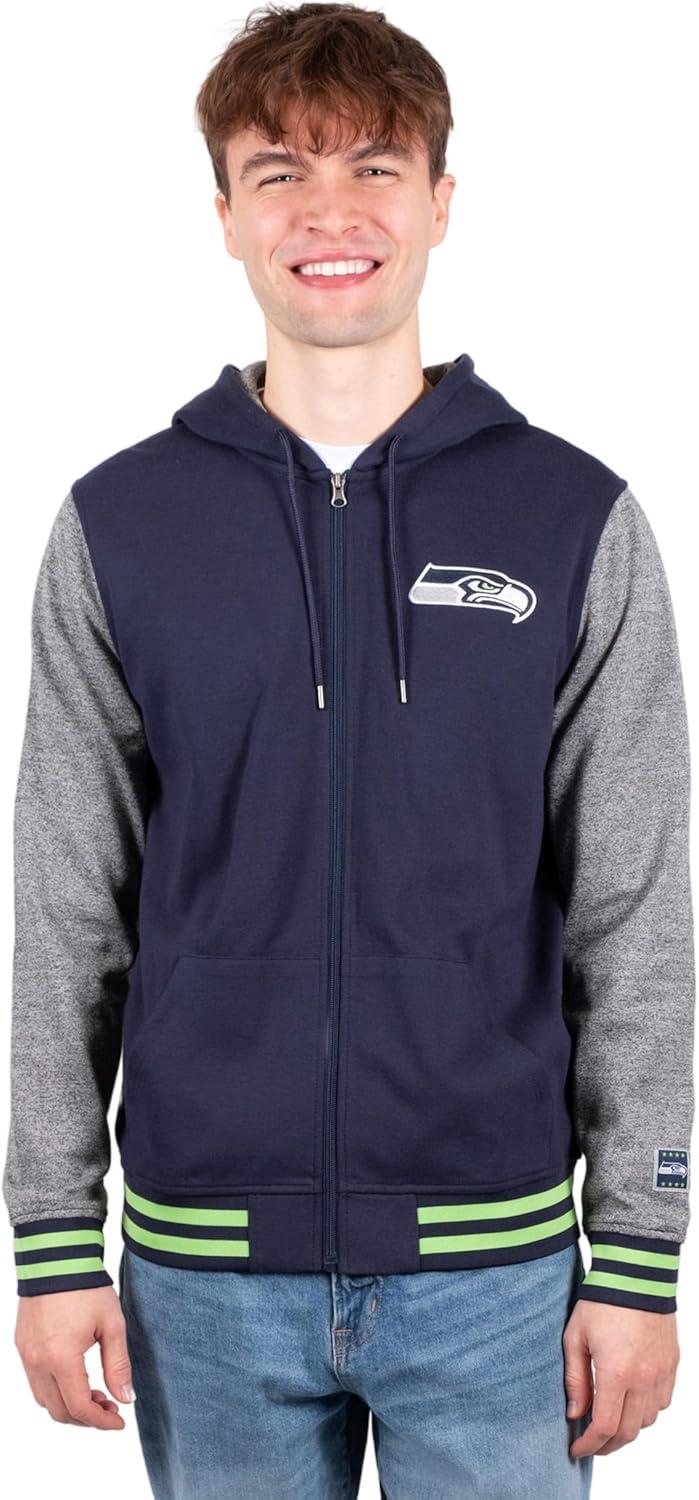 Ultra Game Men’s NFL Official Ultimate Full Zip Varsity Hoodie Sweatshirt Jacket(Team Color)