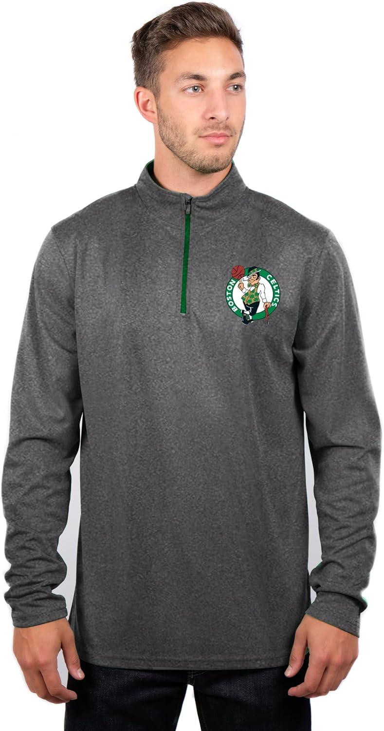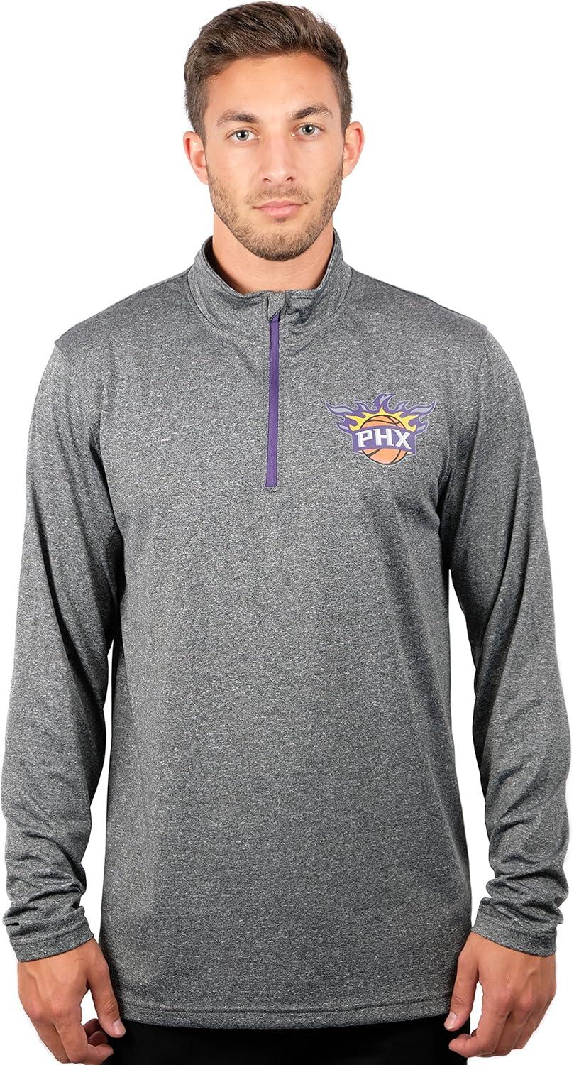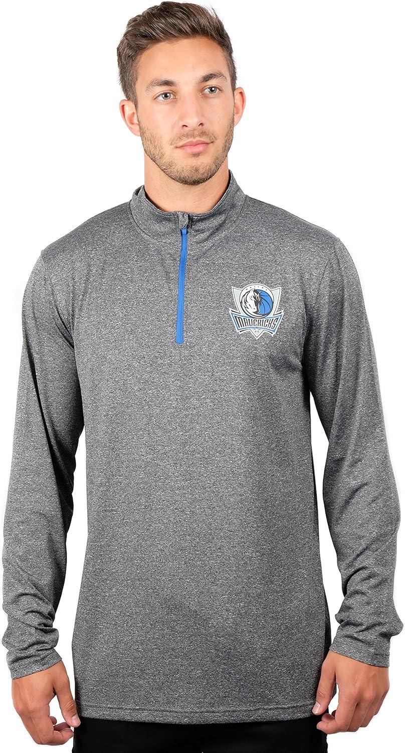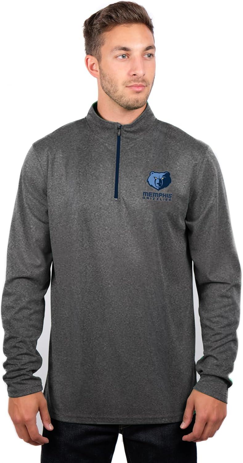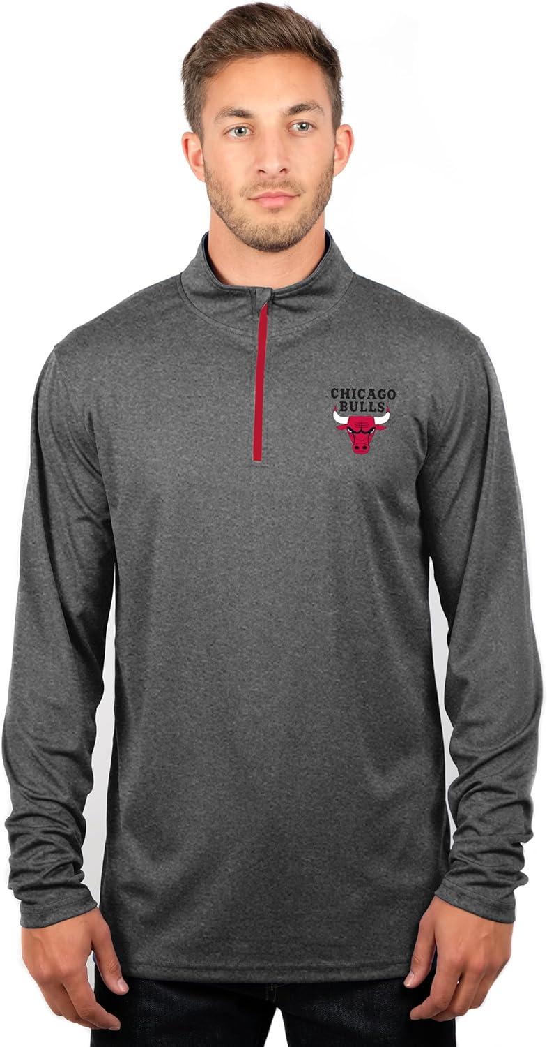 Ultra Game Men’s NBA Official Quarter Zip Long Sleeve Pullover T-Shirt(Heather Charcoal)