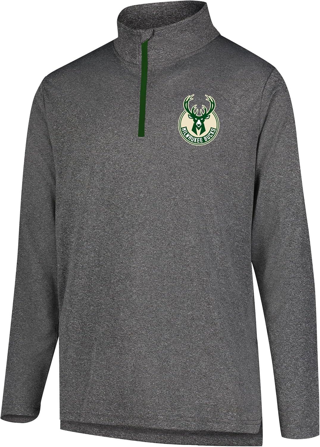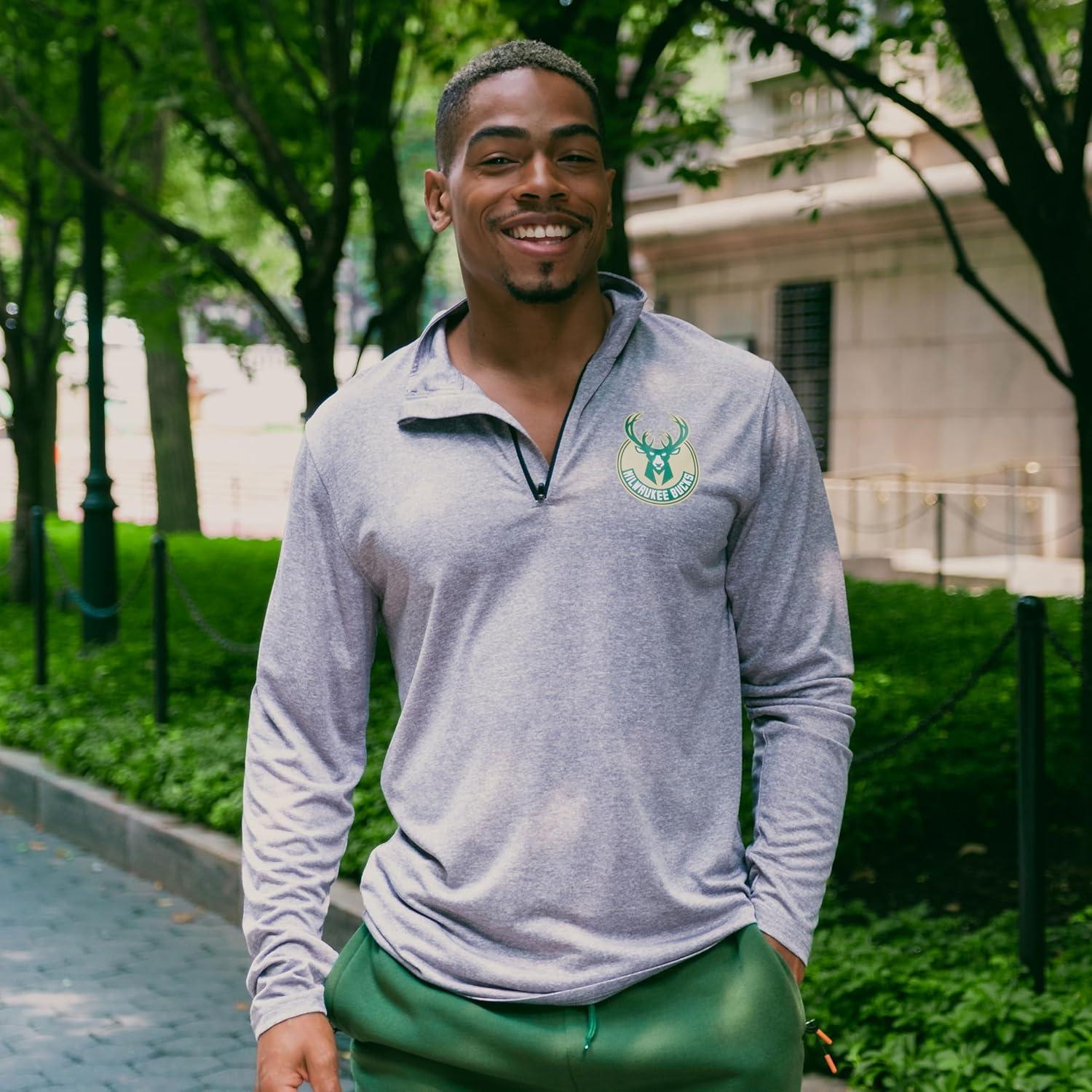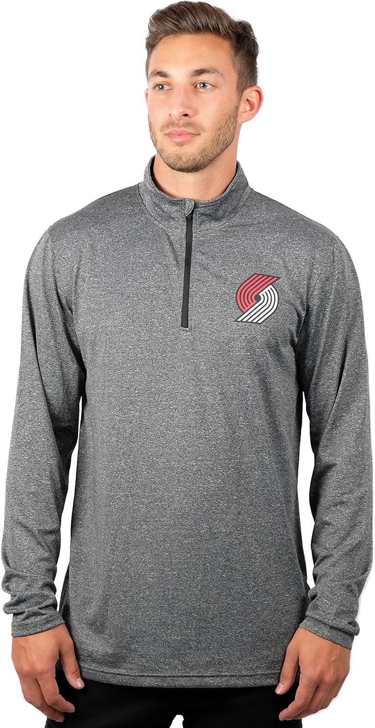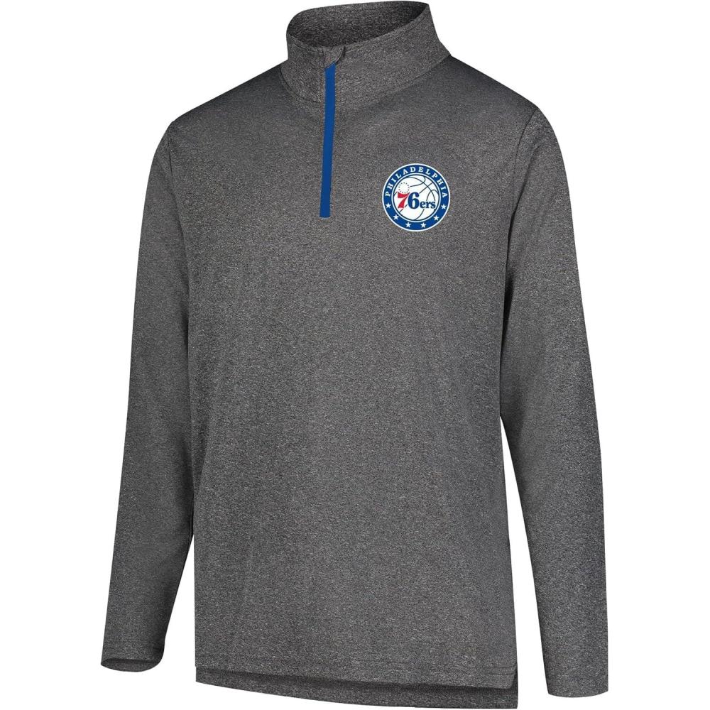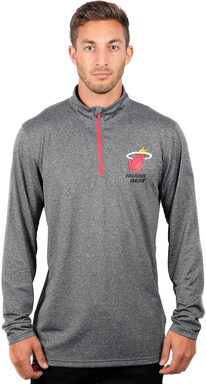 Ultra Game Men’s NBA Official Quarter Zip Long Sleeve Pullover T-Shirt(Heather Charcoal)