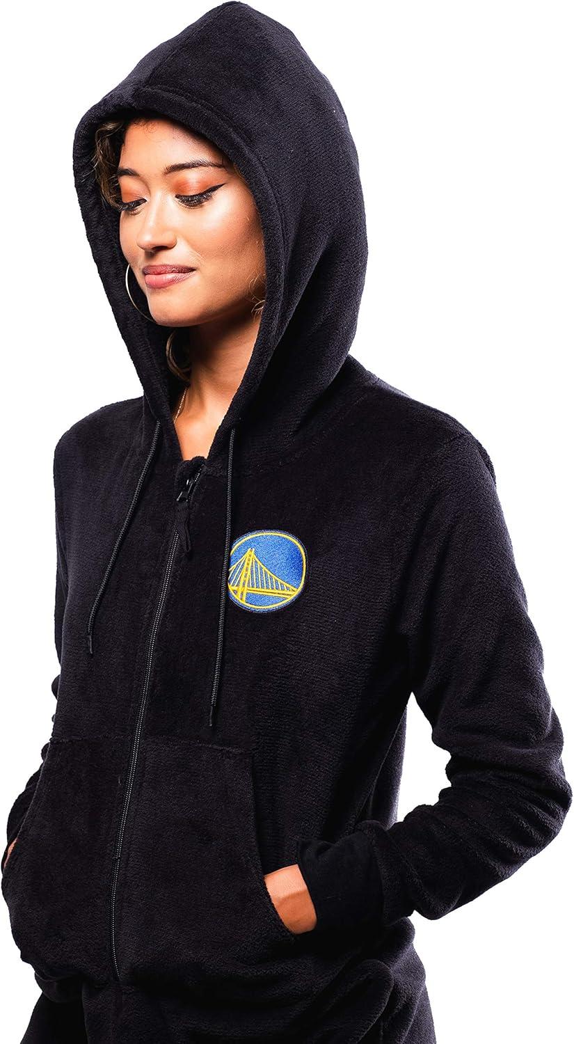 Ultra Game NBA Women’s Sleepwear Super Soft Fleece Onesie Pajama Hooded Jumpsuit(Golden State Warriors)