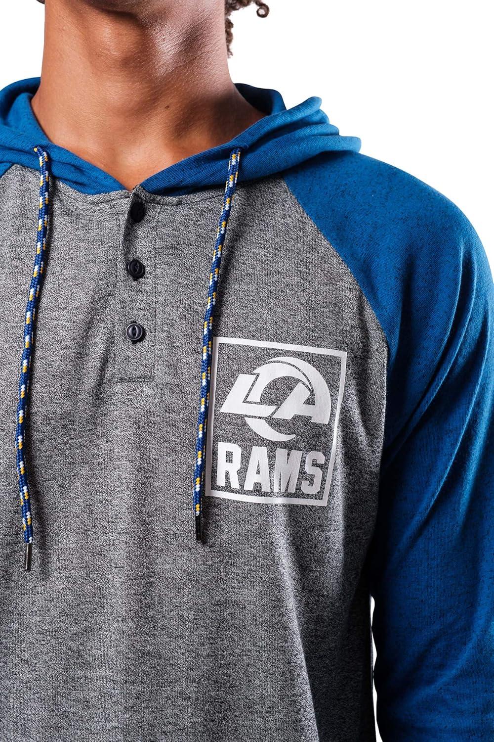 Ultra Game NFL Mens Fleece Hoodie Pullover Sweatshirt Henley(Los Angeles Rams)