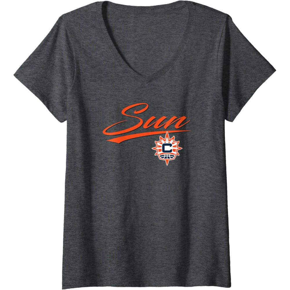 Womens WNBA Connecticut Suns Officially Licensed V-Neck T-Shirt(Dark Heather Grey)